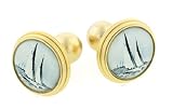 JJ Weston , Brushed finish gold plated ball back cufflinks with a black and white 2 sailboats image. These cufflinks measure 3/4 inch in diameter. Presentation boxed. Made in the USA ...